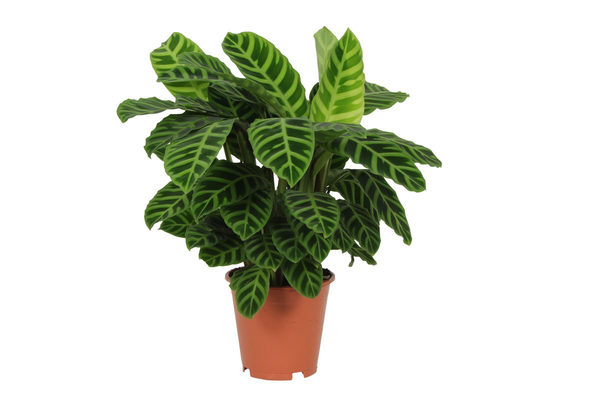 - De Calathea Zebrina heeft opvallende, lange bladeren met een karakteristiek patroon van groene strepen op een lichtgroene achtergrond.