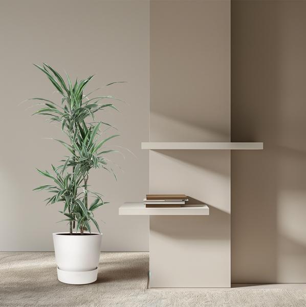 - De Dracaena Warneckei is een stijlvolle kamerplant met lange, smalle bladeren die een levendig groen kleur hebben, versierd met een opvallende, witte rand. De bladeren groeien rechtop en creëren een elegante, volle uitstraling die perfect is voor elk interieur.