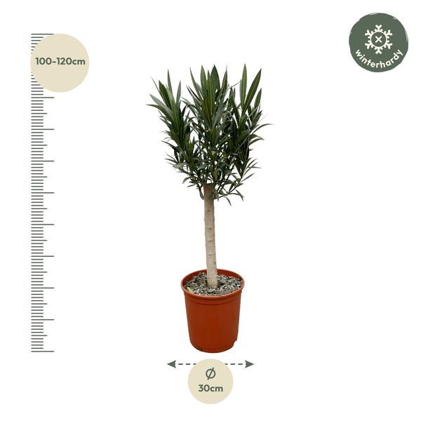 Nerium Oleander op stam met witte bloem - 110cm - Ø22